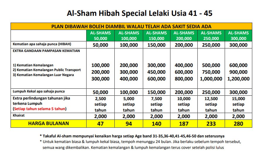 Boleh ambil Hibah Takaful melalui Takaful Al-Shams walaupun sudah menghidap kencing manis. Pemeriksaan kesihatan tidak diperlukan kerana plan hibah takaful ini khas untuk golongan berpenyakit. Kematian disebabkan kencing manis juga dibayar pampasan. Khairat kematian juga diberikan